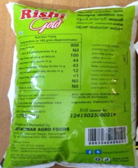 Sasi kumar agro foods packing edible oil in very hyginic environment with modern automatic machines with no hand touch right from raw materials input to final packing output. Presently we are packing Refined Palmoil - RISHI GOLD , Refined Sunflower Oil - GOOD LUCK , and PRATHANA DEEPA OIL all in bulk (15kg tins) to smaller Consumer Packs (1l and 1/2l pouces) to meet every customer needs.